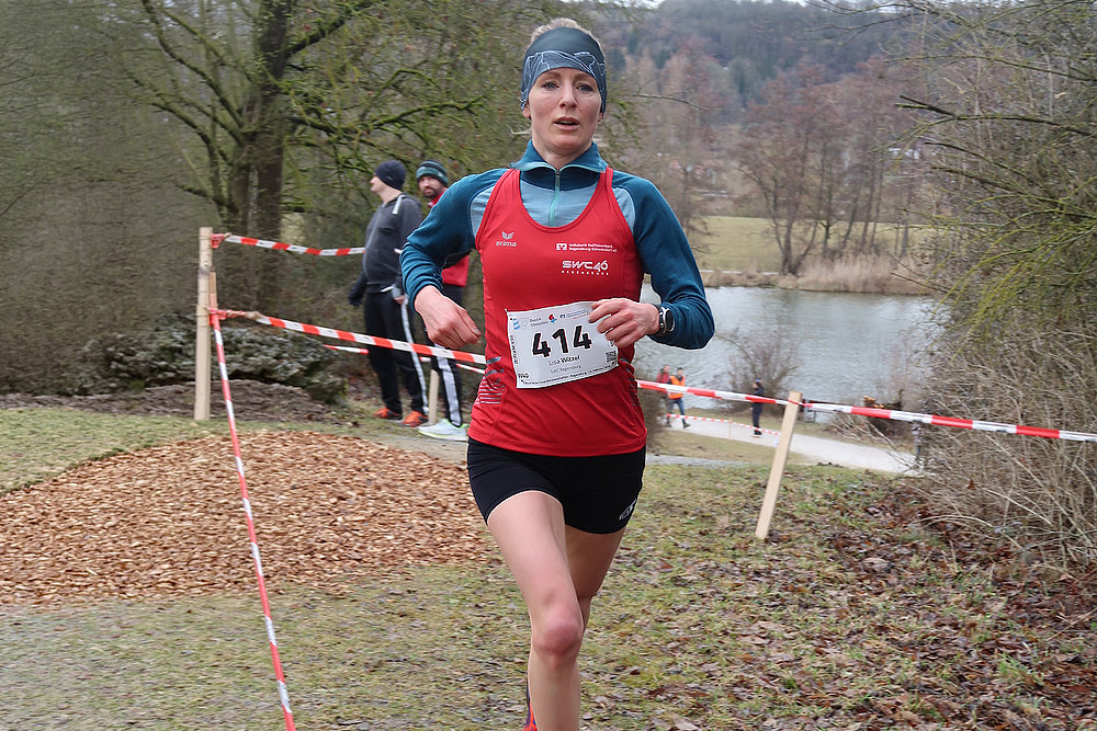 „Rein ins Rennen, zügig an die Spitze setzen, sich ablösen, den Vorsprung ausbauen“ – dies war offenbar für viele Favoriten in den Mastersklassen die Devise für diese Meisterschaften. So zum Beispiel für Katka Wenzler (LG Würm Athletik). Die zweifache Deutsche Meisterin im Crosslauf 2025 und Siegerin in Regensburg im Lauf 1 W35 – W80 betonte: „Ich liebe Cross und will Ende März, Anfang April zu den Europameisterschaften der Masters fahren, da habe ich auch im Cross gemeldet und dies hier ist eine Vorbereitung hierfür.“ Hinter Wenzler erreichte Lisa Witzel (SWC Regensburg) das Ziel. Offenbar reichte ihr nicht die Meisterschaft in der W40, stand sie doch im Lauf 11 Langstrecke um 15:30 Uhr wiederum an der Startlinie und unterstützte ihre Vereinskolleginnen bei der Mannschaftswertung. Ähnliches galt für Diana Kurrer (MTV Ingolstadt) als Vizemeisterin in der W45. Die Schnellsten in den weiteren Altersklassen der Frauen, werden seit vielen Jahren in ihrer Alterskohorte häufig mit Medaillen und Titeln belohnt. So zum Beispiel Elina Gradl (SC Kemmern) in der W45, und Constanze Boldt (SWC Regensburg) in der W50. Wieder eine Siegermedaille gab es auch für Michaela Jilg, Brigitte Rupp (beide TSG 08 Roth), Christine Schrenker-Schöpf (TV 1848 Coburg) sowie für Regina Graf (SWC Regensburg) in der W70.