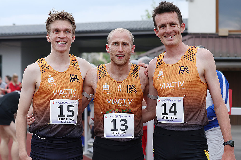„Wir haben im Trainingslager nur Ausdauer trainiert, da sind 1.000 Meter schon eine Umstellung“, erzählte Niklas Buchholz (Franconia Athletics) vor dem Start der 3-mal-1.000-Meter-Staffel, die er gemeinsam mit Jakob Dieterich und Florian Bremm lief. Nach 7:27,40 Minuten geht es für das Trio bei der Deutschen Meisterschaft darum, den Titel zu verteidigen. Was bei Bremm und Co. locker aussah, fühlte sich für Fabian Riegelsberger, den Startläufer des TSV Gräfelfing, ganz anders an: „Nach einem 400-Meter-Rennen 1.000 Meter zu laufen, war keine gute Idee.“