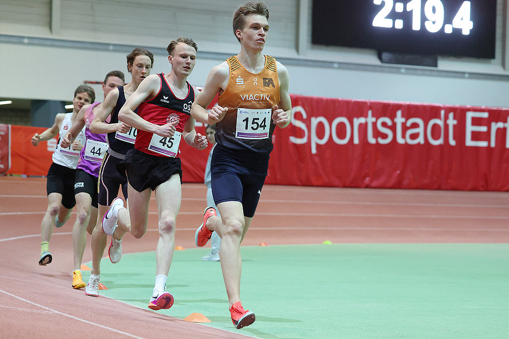 Es waren die Läufe, bei denen es die Medaillen für die bayerischen Universitäten gab. Jakob Dieterich (Franconia Athletics) übernahm bei den 3.000 Metern die Führungsarbeit in einer Fünfergruppe. Zwischenzeitlich konnte er einen kleinen Vorsprung herauslaufen. Gegen Ende wurde es noch einmal knapp, als die Verfolgergruppe mit Linus Vennemann (HS Osnabrück) herangeflogen kam. Mit einer Zeit von 8:09,00 Minuten sicherte sich der Student der Friedrich-Alexander-Universität Erlangen-Nürnberg den Titel und die Norm für die Hallen-DM in Dortmund.