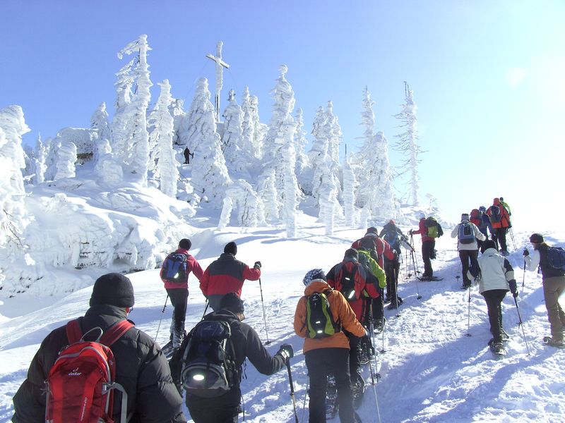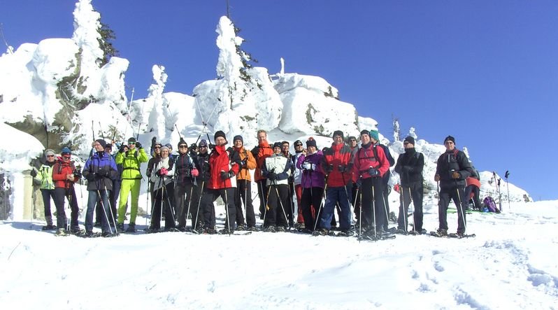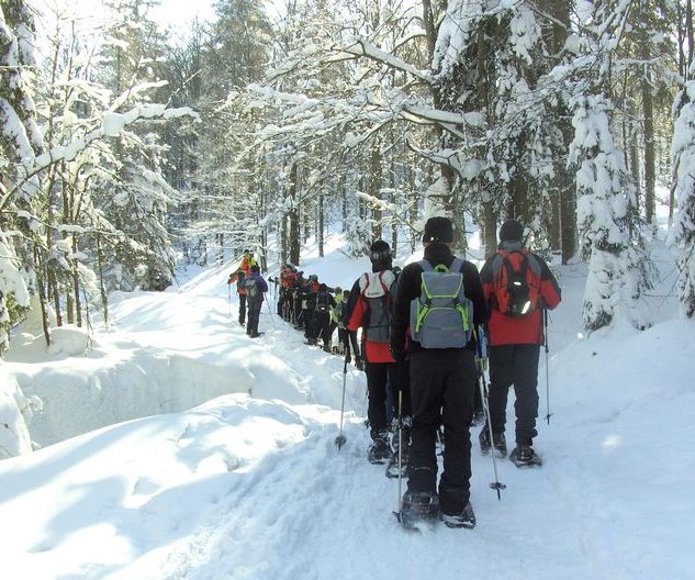 Unter kompetenter Führung konnte der Leistungsfähigkeit der Teilnehmer durch verschiedene Tourenangebote gerecht werden. Am Samstagvormittag starteten die Sportler bei herrlichem Sonnenschein ihre erste Tour auf den 1016 Meter hohen Brotjackriegel, wobei 300 Höhenmeter bis zum Gipfel zu bewältigen waren. Tourenführer Peter, der sonst in Tibet, Alaska oder Russland als Führer unterwegs ist, weihte die Anfänger in die Geheimnisse des Schneeschuhwanderns ein.