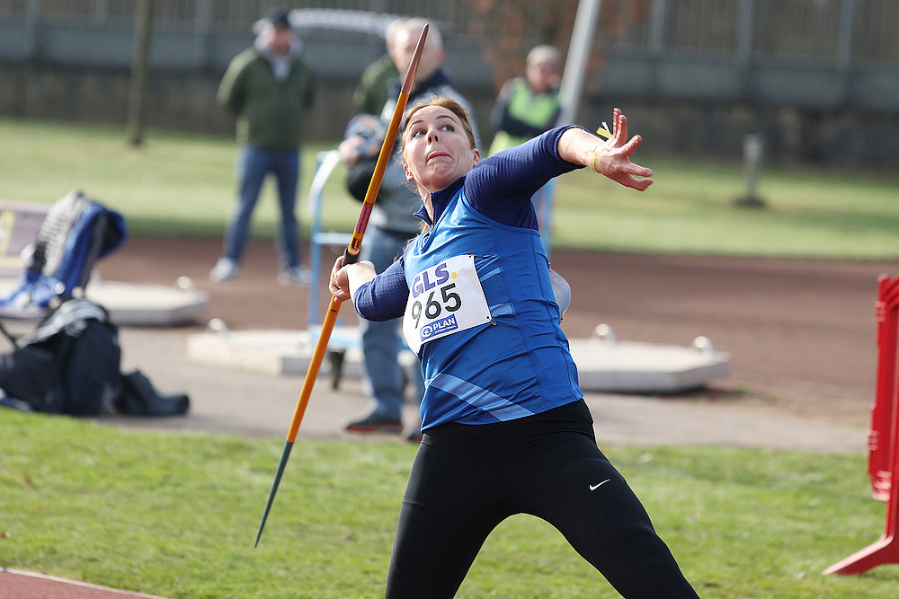Ebenfalls Doppelmeisterin in der Altersklasse W35 wurde Anna Kutter-Stumpf (TSV Pfaffenhausen) mit Siegen über 60 Meter Hürden und im Hochsprung. Vor zwanzig Jahren wurde Sandra Büttner im Trikot des LAC Quelle Fürth Deutsche U18-Meisterin im Kugelstoßen. Jetzt, in der Altersklasse W35, sicherte sie sich im Trikot des Post SV Nürnberg erneut den Titel im Kugelstoßen.