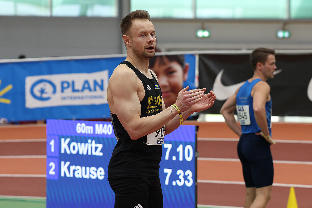 Eine Ähnliche Überlegenheit zeigte auch Ralf Kowitz (LG Stadtwerke München) in der M40 über 60 Meter und 200 Meter. Auch bei ihm war die Leistung über 60 Meter die bessere Zeit. Mit 7,10 Sekunden hatte Kowitz einen großen Vorsprung. „Das war kein wirklich guter Lauf von mir,“ meinte er im Ziel. Auch über 200 Meter war er mit seiner Zeit von 23,01 Sekunden nicht zu schlagen.