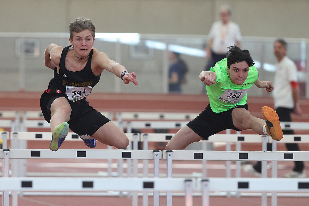 Beim 60-Meter-Sprint der Jungs war der Sieger mit dem bloßen Auge nicht auszumachen. Erst die Auswertung des Zielfotos ergab den Sieger. Shahmeer Qadeer (LG Erlangen) und Ben Haberkorn (SV Schwarz-Weiss Kemnath) wurden beide mit 7,55 Sekunden gestoppt. Qadeer hatte am Ende einen Vorsprung von drei Tausendstelsekunden.