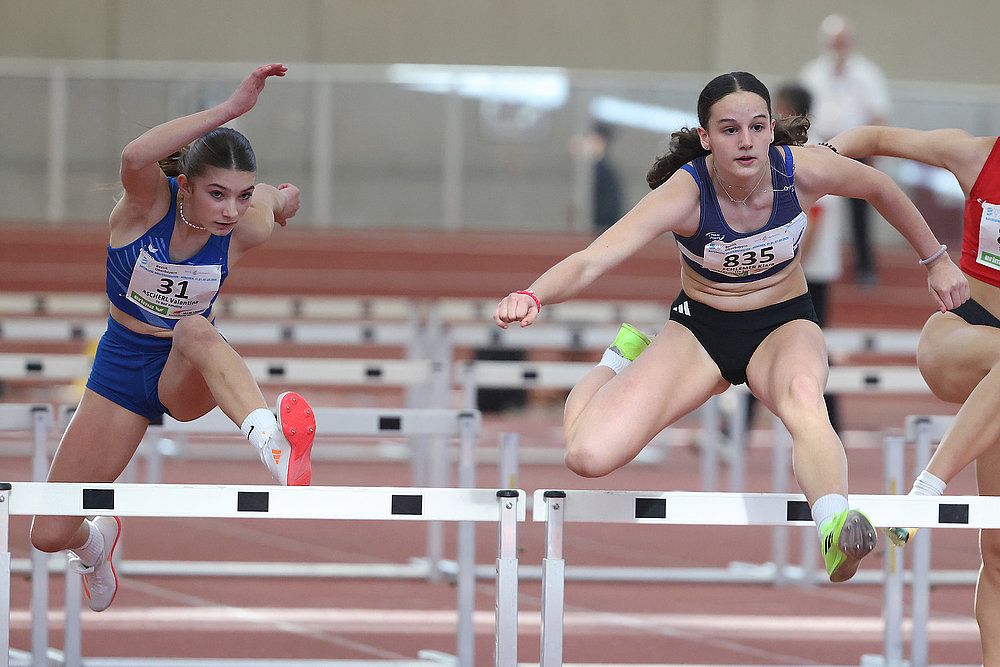 Vor allem Emma Scharf (TB Jahn Wiesau) weckte diese Erwartungen. Mit ihren noch 13 Jahren hatte sie bereits die W14-Rekorde über 60 Meter und 60 Meter Hürden anvisiert. Zunächst ging sie bei der W15 über 60 Meter Hürden an den Start. Im Vorlauf wackelte der Rekord von Amelie Giese (TSV Zirndorf) gewaltig. Mit 8,82 Sekunden blieb sie nur zwei Hundertstelsekunden darüber. Im Finale war sie zwischen den Hürden „zu schnell“, sodass sie in eine Hürde hineinlief. Den Titel sicherte sich Klara Schlemer (TSV Bad Endorf) in guten 8,87 Sekunden.