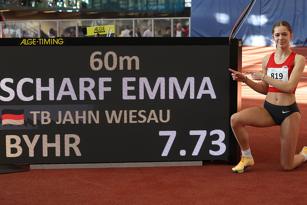 Im 60-Meter-Sprint ohne störende Hürden sollte der W14-Rekord von Naomi Krebs (LG Bamberg) fallen. Schon im Vorlauf waren es 7,76 Sekunden – noch kein Rekord. Dieser fiel im Finale, in dem Emma Scharf mit 7,73 Sekunden genauso schnell war wie Krebs 2017.