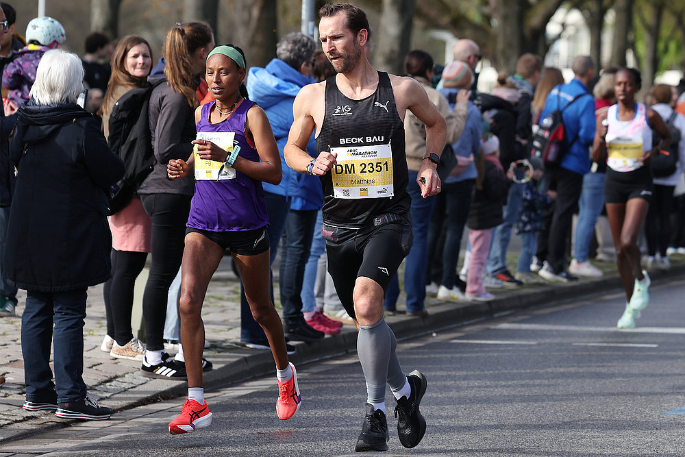 Für Domenika Mayer ist der Hannover-Marathon fast schon ein Heimspiel. Zum vierten Mal war sie in der niedersächsischen Metropole am Start und konnte zum vierten Mal den Marathon gewinnen. Drei dieser Marathons waren gleichzeitig Deutsche Meisterschaften. Auf dem Papier war die Konkurrenz in diesem Jahr so stark wie nie zuvor bei ihren Starts in Hannover. Mit Fabienne Königstein (Hannover 96), der schnellsten deutschen Marathonläuferin des Vorjahres, und Laura Hottenroth (Düsseldorf Athletics) war die gesamte Spitze des deutschen Marathonlaufs am Start. Davon ließ sich Mayer jedoch nicht beeindrucken und lief ihr eigenes Rennen. Mit einer Zeit von 2:21:26 Stunden verbesserte sie ihren eigenen Streckenrekord um über zwei Minuten und schob sich auf Platz zwei der ewigen deutschen Bestenliste. Damit gewann sie im Vorbeigehen auch noch den Titel in der Altersklasse W35. (Siehe extra Bericht über Domenika Mayer)
